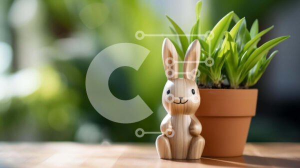 Intra Συλλεκτικό Ξύλινο Παζλ Plywood 4mm – Ξύλινο ειδώλιο λαγουδάκι δίπλα σε φυτό εσωτερικού χώρου σε γλάστρα Σε Ξύλινο Κουτί – Διαστάσεις Puzzle: 10×10 cm – 25 κομμάτια