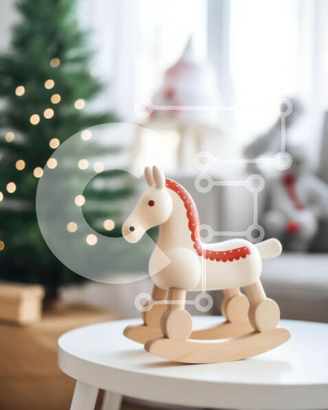 Intra Συλλεκτικό Ξύλινο Παζλ Plywood 4mm – Ξύλινο κουνιστό άλογο σε λευκό τραπέζι στο σαλόνι Σε Ξύλινο Κουτί – Διαστάσεις Puzzle: 10×10 cm – 25 κομμάτια