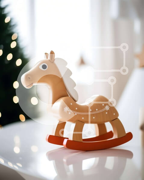 Intra Συλλεκτικό Ξύλινο Παζλ Plywood 4mm – Ξύλινο κουνιστό άλογο με χριστουγεννιάτικο δέντρο Σε Ξύλινο Κουτί – Διαστάσεις Puzzle: 10×10 cm – 25 κομμάτια