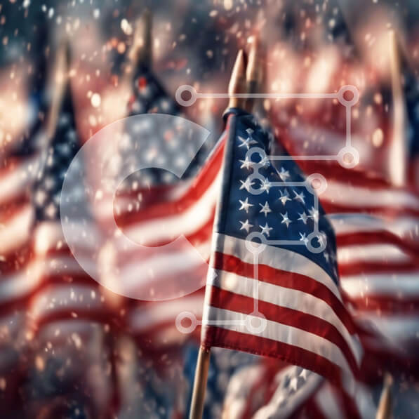 Intra Συλλεκτικό Ξύλινο Παζλ Plywood 4mm – Ομάδα αμερικανικών σημαιών που κυματίζουν στον άνεμο Σε Ξύλινο Κουτί – Διαστάσεις Puzzle: 10×10 cm – 25 κομμάτια