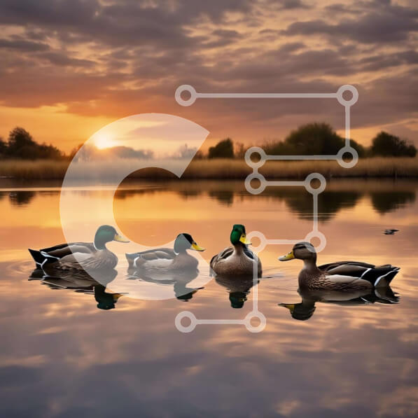 Intra Συλλεκτικό Ξύλινο Παζλ Plywood 4mm – Πάπιες που κολυμπούν στο ηλιοβασίλεμα Σε Ξύλινο Κουτί – Διαστάσεις: 10×10 cm – 25 κομμάτια