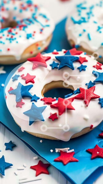 Intra Συλλεκτικό Ξύλινο Παζλ Plywood 4mm – Παγωμένο ντόνατς με κόκκινα, λευκά και μπλε αστέρια σε μπλε τραπεζομάντιλο Σε Ξύλινο Κουτί – Διαστάσεις: 10×10 cm – 25 κομμάτια