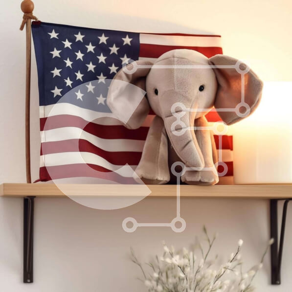Intra Συλλεκτικό Ξύλινο Παζλ Plywood 4mm – Παιχνίδι με γέμιση ελέφαντα και αμερικανική σημαία στο ράφι Σε Ξύλινο Κουτί – Διαστάσεις: 10×10 cm – 25 κομμάτια