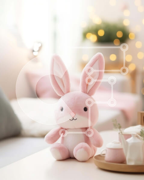 Intra Συλλεκτικό Ξύλινο Παζλ Plywood 4mm – Παιχνίδι με ροζ λαγουδάκι με φλιτζάνια τσαγιού στο τραπέζι Σε Ξύλινο Κουτί – Διαστάσεις Puzzle: 10×10 cm – 25 κομμάτια
