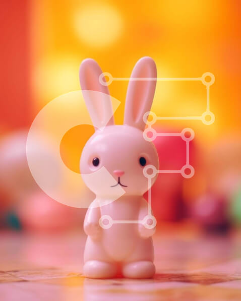 Intra Συλλεκτικό Ξύλινο Παζλ Plywood 4mm – Παιχνίδι ροζ λαγουδάκι σε πορτοκαλί τραπέζι Σε Ξύλινο Κουτί – Διαστάσεις: 10×10 cm – 25 κομμάτια