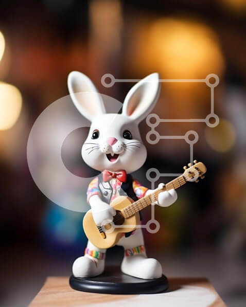 Intra Συλλεκτικό Ξύλινο Παζλ Plywood 4mm – Παιχνιδιάρικο λευκό λαγουδάκι με ηλεκτρική κιθάρα Σε Ξύλινο Κουτί – Διαστάσεις Puzzle: 10×10 cm – 25 κομμάτια