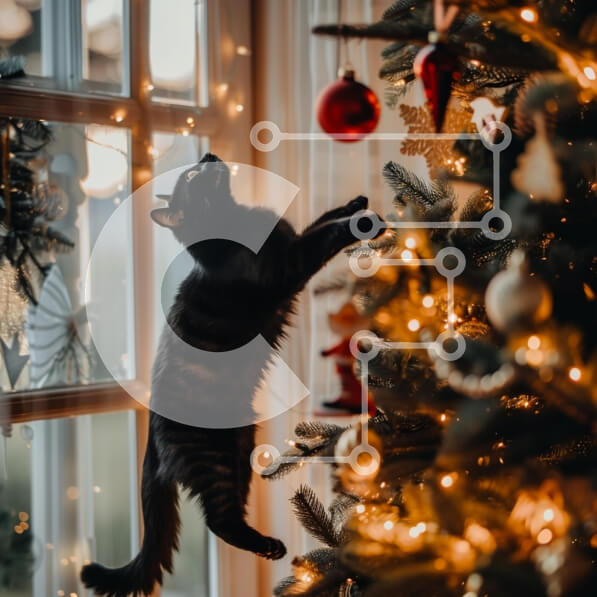 Intra Συλλεκτικό Ξύλινο Παζλ Plywood 4mm – Παιχνιδιάρικη γάτα που φτάνει για τα χριστουγεννιάτικα στολίδια Σε Ξύλινο Κουτί – Διαστάσεις: 10×10 cm – 25 κομμάτια