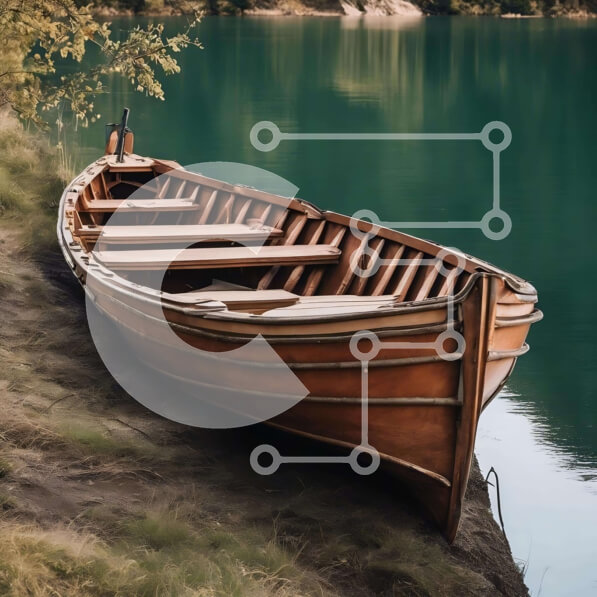Intra Συλλεκτικό Ξύλινο Παζλ Plywood 4mm – Παλαιά ξύλινη βάρκα στην ακτή του υδάτινου σώματος Σε Ξύλινο Κουτί – Διαστάσεις: 10×10 cm – 25 κομμάτια