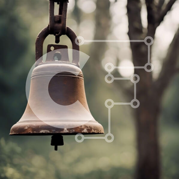 Intra Συλλεκτικό Ξύλινο Παζλ Plywood 4mm – Παλιά σκουριασμένη καμπάνα που κρέμεται μπροστά από τα δέντρα Σε Ξύλινο Κουτί – Διαστάσεις Puzzle: 10×10 cm – 25 κομμάτια