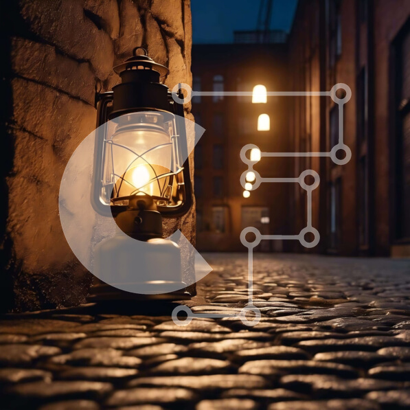 Intra Συλλεκτικό Ξύλινο Παζλ Plywood 4mm – Παλιομοδίτικο φανάρι στο πλακόστρωτο σοκάκι τη νύχτα Σε Ξύλινο Κουτί – Διαστάσεις Puzzle: 10×10 cm – 25 κομμάτια