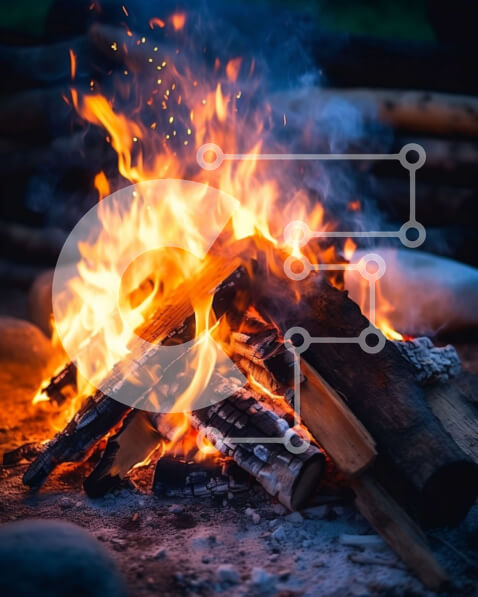 Intra Συλλεκτικό Ξύλινο Παζλ Plywood 4mm – Πανέμορφη εικόνα της φωτιάς με κορμούς που καίγονται έντονα τη νύχτα Σε Ξύλινο Κουτί – Διαστάσεις Puzzle: 10×10 cm – 25 κομμάτια