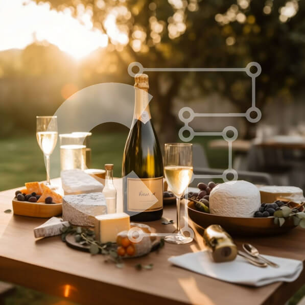 Intra Συλλεκτικό Ξύλινο Παζλ Plywood 4mm – Πανέμορφη σκηνή πικνίκ με κρασί, τυρί και κράκερ στο ηλιοβασίλεμα σε μια αυλή Σε Ξύλινο Κουτί – Διαστάσεις: 10×10 cm – 25 κομμάτια