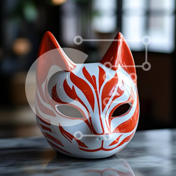 Intra Συλλεκτικό Ξύλινο Παζλ Plywood 4mm – Παραδοσιακή μάσκα αιλουροειδών σε κόκκινο και λευκό Σε Ξύλινο Κουτί – Διαστάσεις Puzzle: 10×10 cm – 25 κομμάτια