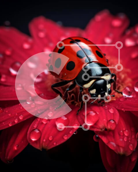Intra Συλλεκτικό Ξύλινο Παζλ Plywood 4mm – Πασχαλίτσα στο κόκκινο λουλούδι με σταγονίδια νερού Σε Ξύλινο Κουτί – Διαστάσεις: 10×10 cm – 25 κομμάτια