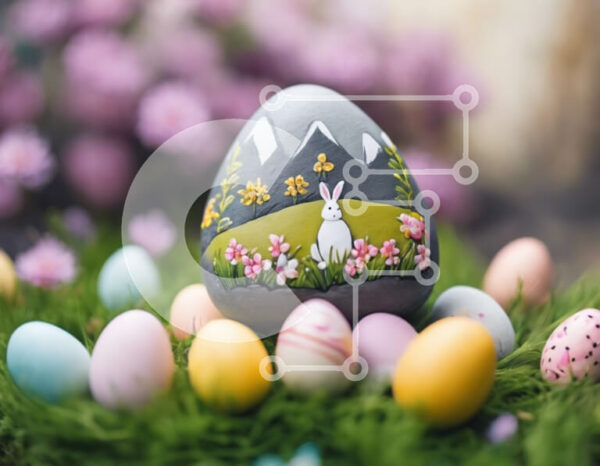 Intra Συλλεκτικό Ξύλινο Παζλ Plywood 4mm – Πασχαλινό αυγό με ζωγραφισμένο λαγουδάκι σε πολύχρωμα αυγά στο γρασίδι Σε Ξύλινο Κουτί – Διαστάσεις: 10×10 cm – 25 κομμάτια