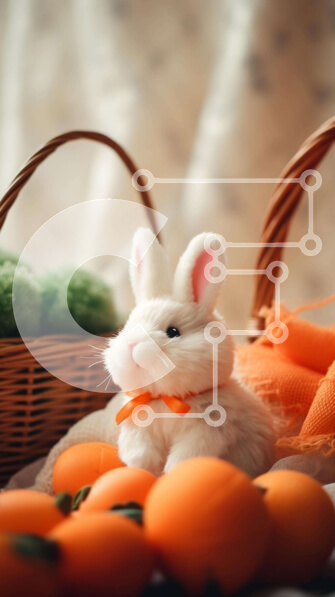Intra Συλλεκτικό Ξύλινο Παζλ Plywood 4mm – Πασχαλινό λαγουδάκι με φρούτα και πορτοκάλια Σε Ξύλινο Κουτί – Διαστάσεις: 10×10 cm – 25 κομμάτια