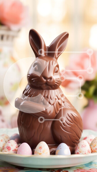Intra Συλλεκτικό Ξύλινο Παζλ Plywood 4mm – Πασχαλινό λαγουδάκι σοκολάτας και πιάτο αυγών με λουλούδια Σε Ξύλινο Κουτί – Διαστάσεις: 10×10 cm – 25 κομμάτια