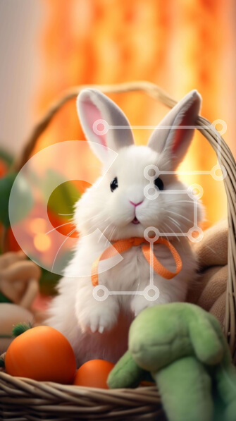 Intra Συλλεκτικό Ξύλινο Παζλ Plywood 4mm – Πασχαλινό λαγουδάκι σε καλάθι με πορτοκάλια και παιχνίδια Σε Ξύλινο Κουτί – Διαστάσεις: 10×10 cm – 25 κομμάτια