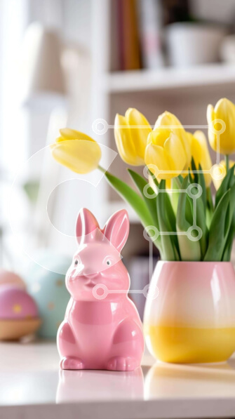 Intra Συλλεκτικό Ξύλινο Παζλ Plywood 4mm – Πασχαλινό ειδώλιο λαγουδάκι και βάζα τουλίπας στο τραπέζι Σε Ξύλινο Κουτί – Διαστάσεις Puzzle: 10×10 cm – 25 κομμάτια