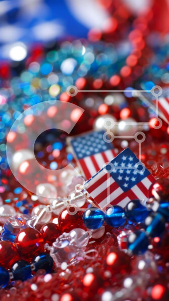 Intra Συλλεκτικό Ξύλινο Παζλ Plywood 4mm – Πατριωτικές κόκκινες, λευκές και μπλε χάντρες για τον εορτασμό της 4ης Ιουλίου Σε Ξύλινο Κουτί – Διαστάσεις Puzzle: 10×10 cm – 25 κομμάτια