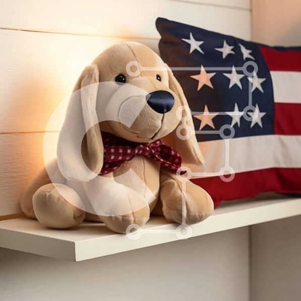 Intra Συλλεκτικό Ξύλινο Παζλ Plywood 4mm – Πατριωτικό γεμιστό σκυλί στο ράφι με τύπωμα αμερικανικής σημαίας Σε Ξύλινο Κουτί – Διαστάσεις: 10×10 cm – 25 κομμάτια