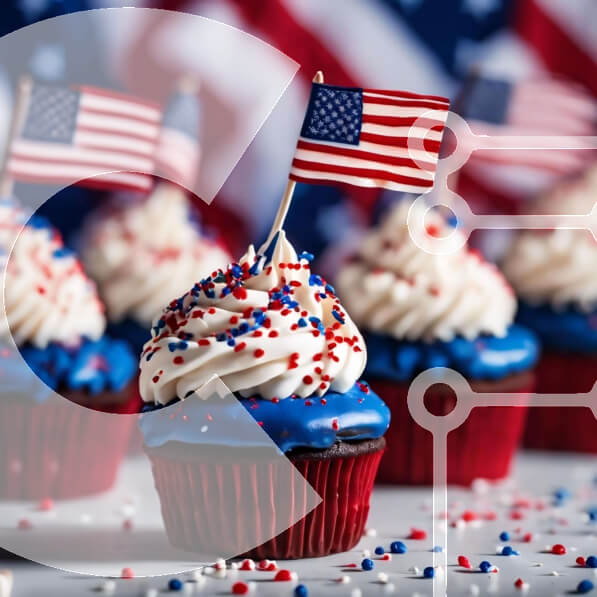 Intra Συλλεκτικό Ξύλινο Παζλ Plywood 4mm – Πατριωτικά Cupcakes 4ης Ιουλίου με αμερικανικές σημαίες Σε Ξύλινο Κουτί – Διαστάσεις: 10×10 cm – 25 κομμάτια