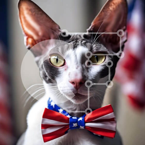 Intra Συλλεκτικό Ξύλινο Παζλ Plywood 4mm – Πατριωτική γάτα με παπιγιόν με αμερικανική σημαία Σε Ξύλινο Κουτί – Διαστάσεις Puzzle: 10×10 cm – 25 κομμάτια