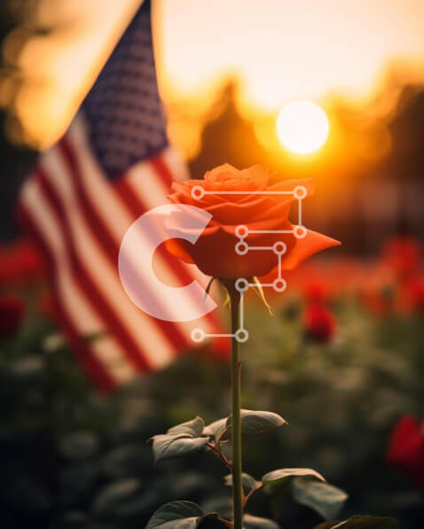 Intra Συλλεκτικό Ξύλινο Παζλ Plywood 4mm – Πατριωτικό κόκκινο τριαντάφυλλο στο πεδίο αμερικανικής σημαίας στο ηλιοβασίλεμα Σε Ξύλινο Κουτί – Διαστάσεις: 10×10 cm – 25 κομμάτια