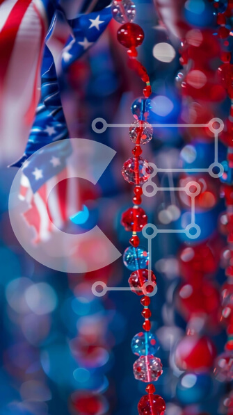 Intra Συλλεκτικό Ξύλινο Παζλ Plywood 4mm – Πατριωτικές κόκκινες, λευκές και μπλε χάντρες που κρέμονται από μια αμερικανική σημαία Σε Ξύλινο Κουτί – Διαστάσεις: 10×10 cm – 25 κομμάτια