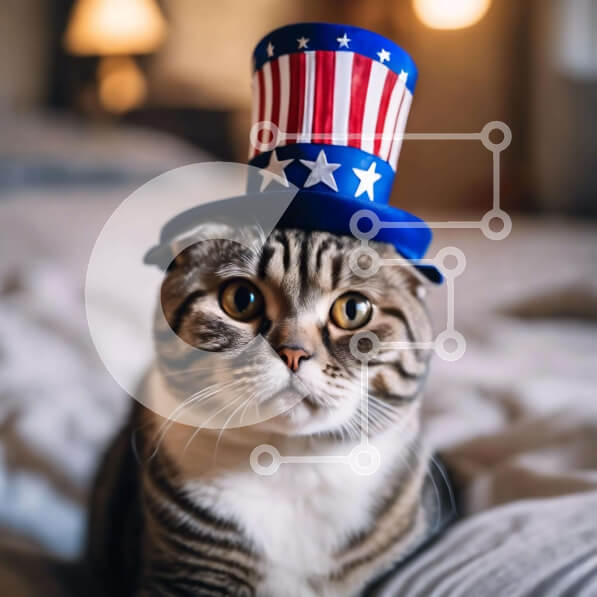 Intra Συλλεκτικό Ξύλινο Παζλ Plywood 4mm – Πατριωτική γάτα με καπέλο με αστέρια και ρίγες Σε Ξύλινο Κουτί – Διαστάσεις: 10×10 cm – 25 κομμάτια