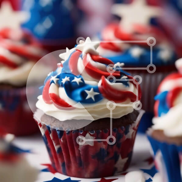 Intra Συλλεκτικό Ξύλινο Παζλ Plywood 4mm – Πατριωτικά cupcakes αμερικανικής σημαίας με αστέρια Σε Ξύλινο Κουτί – Διαστάσεις: 10×10 cm – 25 κομμάτια