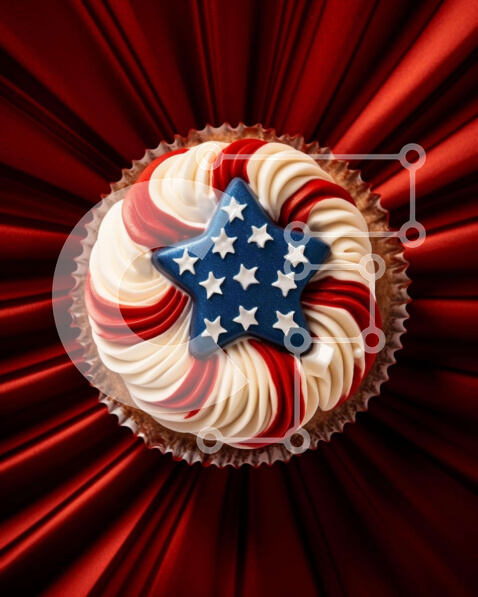 Intra Συλλεκτικό Ξύλινο Παζλ Plywood 4mm – Πατριωτικό κόκκινο, λευκό και μπλε cupcake με μοτίβο αμερικανικής σημαίας Σε Ξύλινο Κουτί – Διαστάσεις: 10×10 cm – 25 κομμάτια