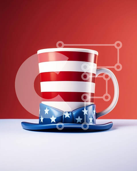 Intra Συλλεκτικό Ξύλινο Παζλ Plywood 4mm – Πατριωτική κούπα και καπέλο καφέ με σχέδιο αμερικανικής σημαίας Σε Ξύλινο Κουτί – Διαστάσεις Puzzle: 10×10 cm – 25 κομμάτια