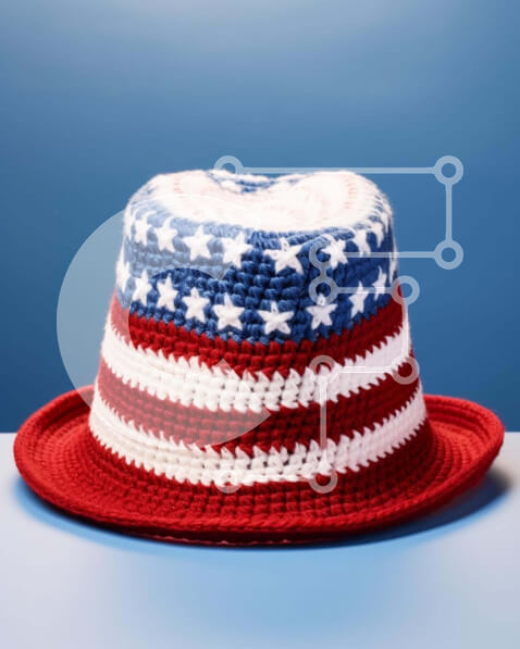 Intra Συλλεκτικό Ξύλινο Παζλ Plywood 4mm – Πατριωτικό κροσέ καπέλο με μοτίβο αμερικανικής σημαίας Σε Ξύλινο Κουτί – Διαστάσεις Puzzle: 10×10 cm – 25 κομμάτια