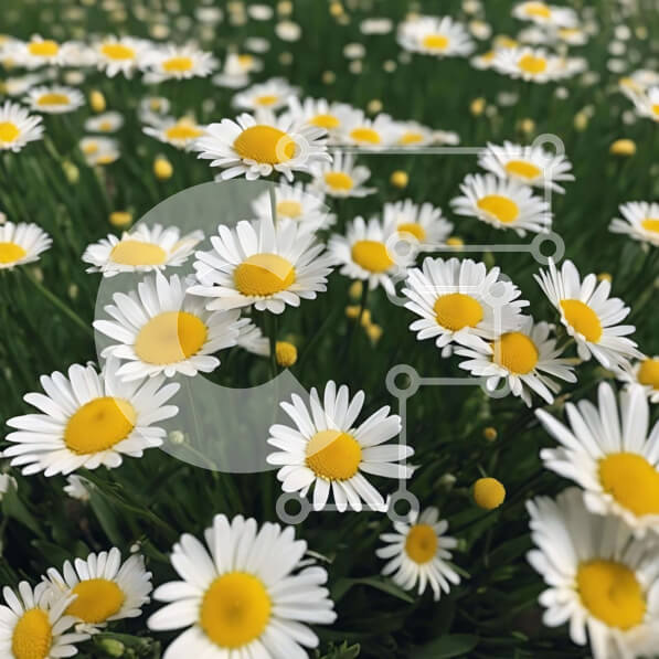 Intra Συλλεκτικό Ξύλινο Παζλ Plywood 4mm – Πεδίο με λευκές και κίτρινες μαργαρίτες στη χλοώδη περιοχή Σε Ξύλινο Κουτί – Διαστάσεις: 10×10 cm – 25 κομμάτια