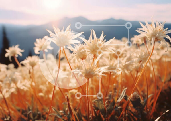 Intra Συλλεκτικό Ξύλινο Παζλ Plywood 4mm – Πεδίο με λευκά λουλούδια με βουνά Σε Ξύλινο Κουτί – Διαστάσεις: 10×10 cm – 25 κομμάτια