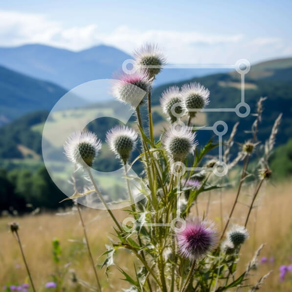 Intra Συλλεκτικό Ξύλινο Παζλ Plywood 4mm – Πεδίο με ψηλά χόρτα και γαϊδουράγκαθα με βουνά στο φόντο Σε Ξύλινο Κουτί – Διαστάσεις: 10×10 cm – 25 κομμάτια
