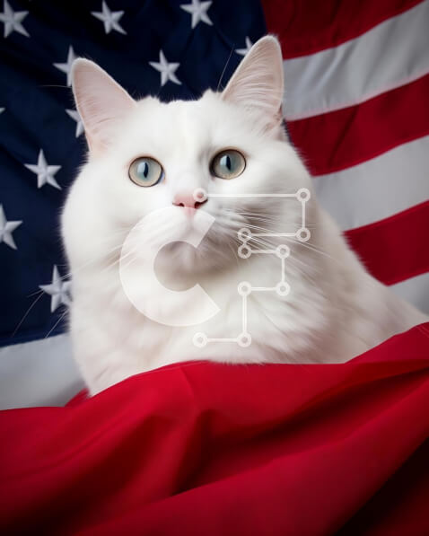 Intra Συλλεκτικό Ξύλινο Παζλ Plywood 4mm – Περίεργη λευκή γάτα στην αμερικανική σημαία Σε Ξύλινο Κουτί – Διαστάσεις: 10×10 cm – 25 κομμάτια