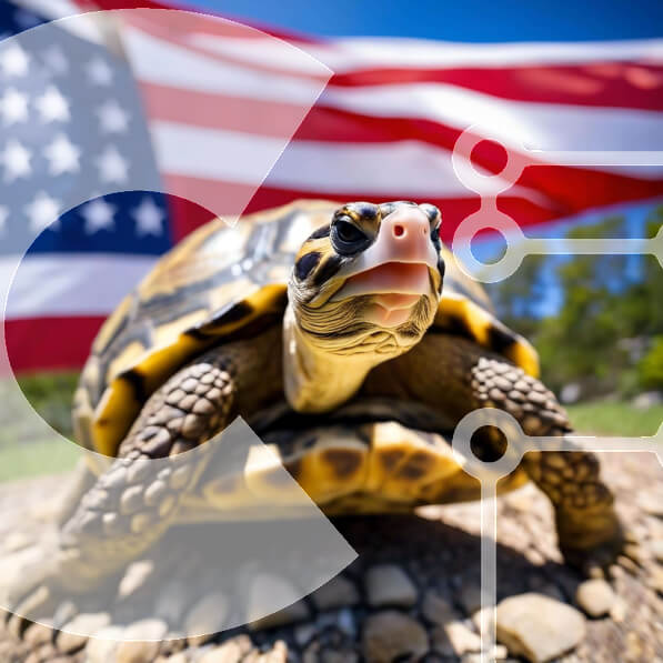 Intra Συλλεκτικό Ξύλινο Παζλ Plywood 4mm – Περίεργη χελώνα μπροστά από την αμερικανική σημαία Σε Ξύλινο Κουτί – Διαστάσεις: 10×10 cm – 25 κομμάτια