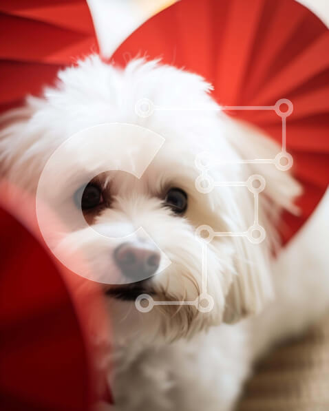 Intra Συλλεκτικό Ξύλινο Παζλ Plywood 4mm – Περίεργος μικρός λευκός σκύλος με κόκκινα χάρτινα φανάρια σε σχήμα καρδιάς Σε Ξύλινο Κουτί – Διαστάσεις: 10×10 cm – 25 κομμάτια