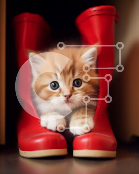 Intra Συλλεκτικό Ξύλινο Παζλ Plywood 4mm – Περίεργο γατάκι που κρυφοκοιτάζει από κόκκινες μπότες Σε Ξύλινο Κουτί – Διαστάσεις: 10×10 cm – 25 κομμάτια