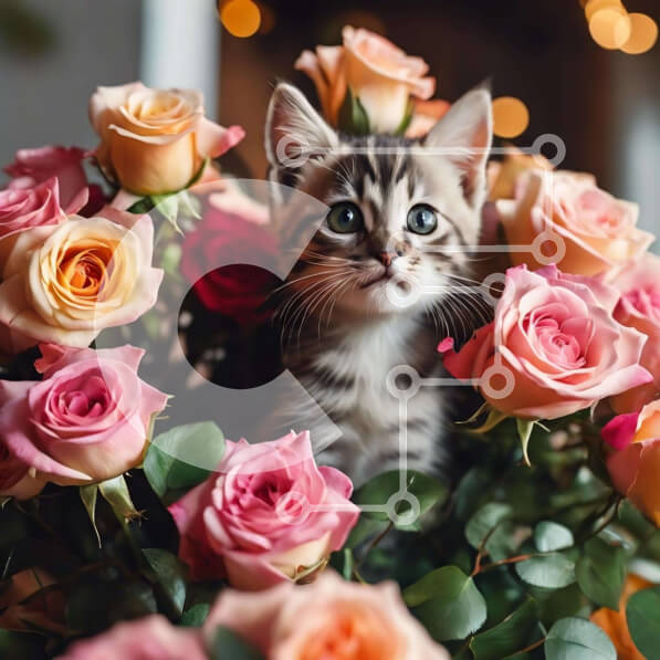 Intra Συλλεκτικό Ξύλινο Παζλ Plywood 4mm – Περίεργο γατάκι με ροζ και κίτρινα τριαντάφυλλα Σε Ξύλινο Κουτί – Διαστάσεις: 10×10 cm – 25 κομμάτια