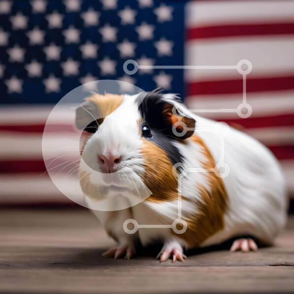 Intra Συλλεκτικό Ξύλινο Παζλ Plywood 4mm – Περίεργο ινδικό χοιρίδιο με φόντο αμερικανικής σημαίας Σε Ξύλινο Κουτί – Διαστάσεις: 10×10 cm – 25 κομμάτια