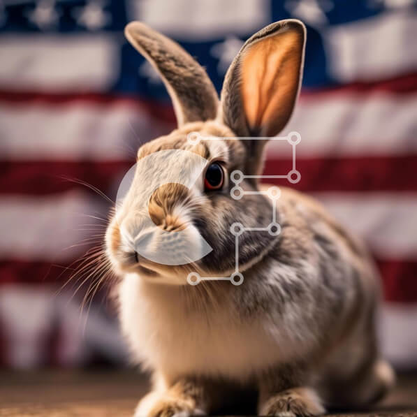 Intra Συλλεκτικό Ξύλινο Παζλ Plywood 4mm – Περίεργο κουνέλι που κάθεται μπροστά από την αμερικανική σημαία Σε Ξύλινο Κουτί – Διαστάσεις: 10×10 cm – 25 κομμάτια