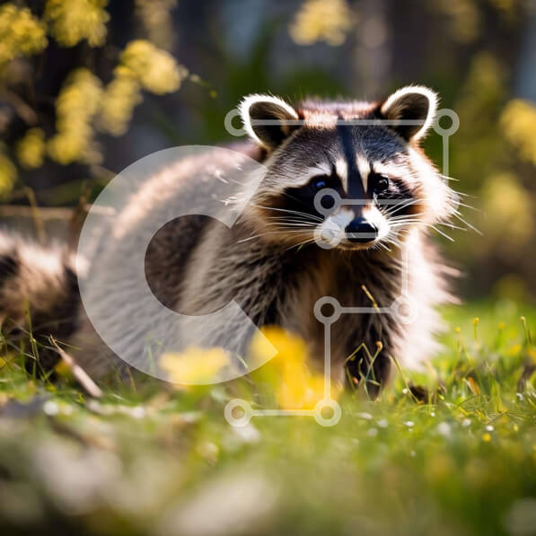 Intra Συλλεκτικό Ξύλινο Παζλ Plywood 4mm – Περίεργο ρακούν σε γρασίδι με κίτρινα λουλούδια Σε Ξύλινο Κουτί – Διαστάσεις: 10×10 cm – 25 κομμάτια