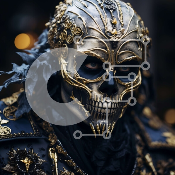 Intra Συλλεκτικό Ξύλινο Παζλ Plywood 4mm – Περίπλοκη μαύρη και χρυσή μάσκα κρανίου Σε Ξύλινο Κουτί – Διαστάσεις Puzzle: 10×10 cm – 25 κομμάτια