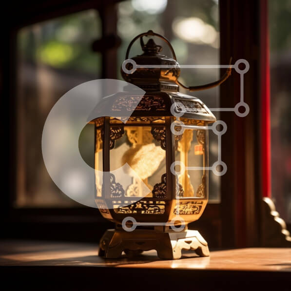 Intra Συλλεκτικό Ξύλινο Παζλ Plywood 4mm – Περίτεχνο μεταλλικό φανάρι σε ξύλινο τραπέζι στο φως του ήλιου Σε Ξύλινο Κουτί – Διαστάσεις Puzzle: 10×10 cm – 25 κομμάτια