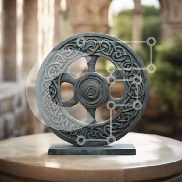 Intra Συλλεκτικό Ξύλινο Παζλ Plywood 4mm – Περίτεχνος τροχός με κέλτικο σχέδιο στο τραπέζι Σε Ξύλινο Κουτί – Διαστάσεις: 10×10 cm – 25 κομμάτια