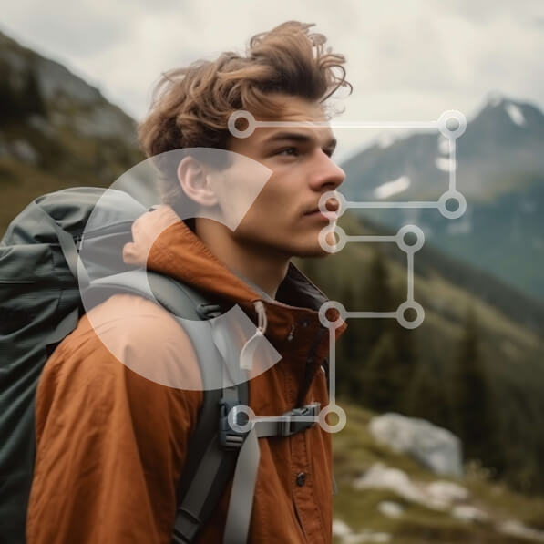 Intra Συλλεκτικό Ξύλινο Παζλ Plywood 4mm – Περιπέτεια πεζοπορίας: Νεαρός άνδρας που στέκεται στο βραχώδες μονοπάτι, απολαμβάνοντας τη θέα στο χιονισμένο βουνό Σε Ξύλινο Κουτί – Διαστάσεις: 10×10 cm – 25 κομμάτια