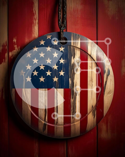 Intra Συλλεκτικό Ξύλινο Παζλ Plywood 4mm – Πιάτο αμερικανικής σημαίας στον κόκκινο ξύλινο τοίχο Σε Ξύλινο Κουτί – Διαστάσεις Puzzle: 10×10 cm – 25 κομμάτια